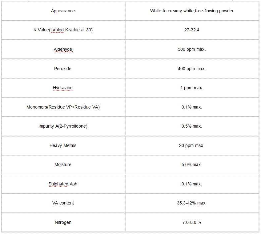 Chemical Description:Vinylpyrrolidone with Vinyl Acetate Copolymer,PVP/VA 64 Powder